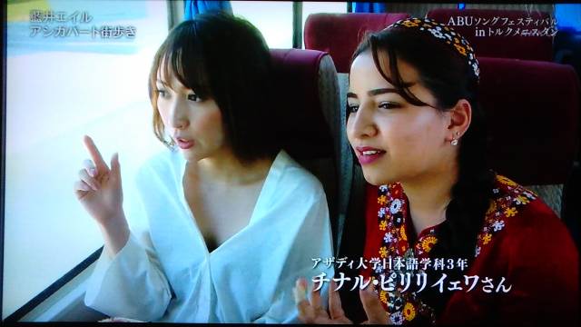 NHKでやってたトルクメニスタンの国営放送局主催の国際交流的な音楽番組で、蒼井エイルさんが日本代表として参加して楽しそうにあちこち観光案内もしてて超嬉しい♪