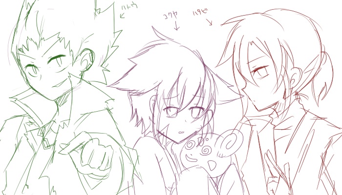 中一ごろのポケモン擬人デザインの化石が引き出しから出てきたから描いてみたし