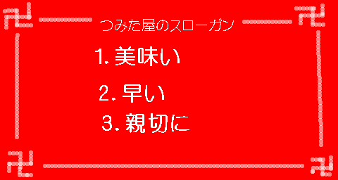1 : 店長:蔦、ゆーの、祐 店員:SASE +サフィー+ タク ほいっぷ 頼歩 和風 募集中です! 塩ラーメン 180円 醤油ラーメン 180円 とんこつラーメン 200円 味噌ラーメン 200円 当店オリジナル特製ラーメン 300円 チャーハン 190円 坦々麺 200円 白いご飯 100円 バター 20円 海苔 10円 チャーシュー 20円 たまご 30円 大盛り +50円 つみた屋特製麺&特製スープセット 500円 クリスマスチャーハン 300円 蟹鍋ラーメン(北海道) 980円 伊勢海老ラーメン(三重) 960円 杏仁豆腐 120円 プリン 130円 これからメニューを増やしていきます |