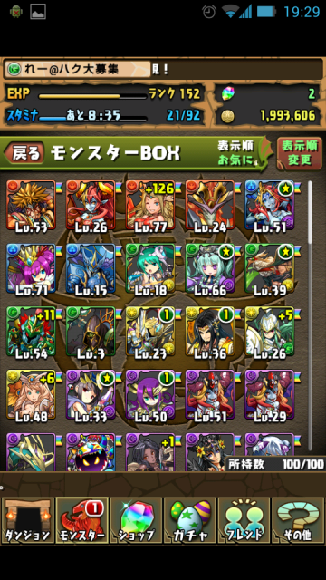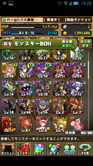 281 : いちおう降臨挑めるようになった・・・勝てるかどうかは別として。 ちょうどスタミナ満タンで50です(弱え~) |