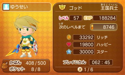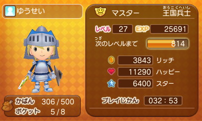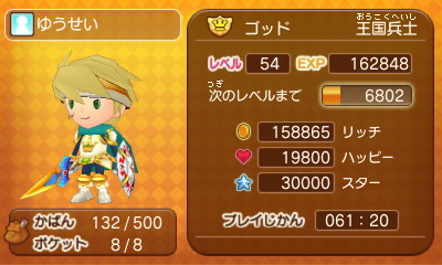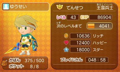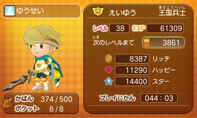 140 : フレコ、0061 0300 4617であります! 王国兵士 マスターであります! 使っている装備 武器 アドベンチャーソード 盾 騎士の盾 頭 トップス ボトムス 腕= 騎士装備 足 スキップサンダル レベル 40であります! よろしくでまります! |