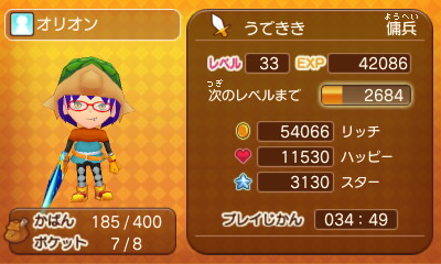 2065 : 誰かフレになりましょ~ フレコは、0147 1279 9746 です。 よろしくお願いします。 王国兵士ゴッド LV57です。 |