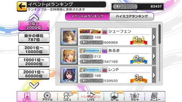 2190 : この人たちいっつも2位と大差つけてんな…これもロック まさかのあいくるしいイベである |