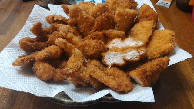 一応片栗粉でも良いんだけど普通パン粉と卵だな