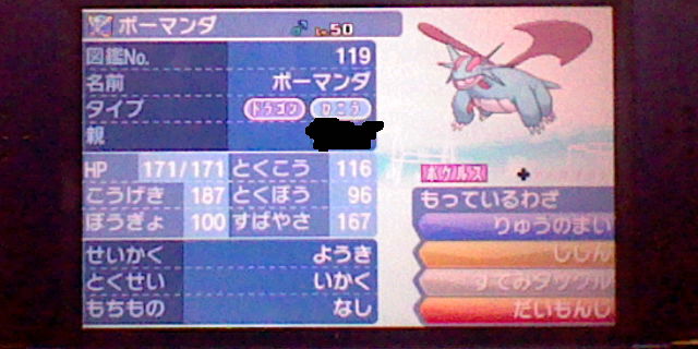 190 : ボーマンダ育成したけど どうかな… ようきAS 持ち物ボーマンダナイト 強いかな?