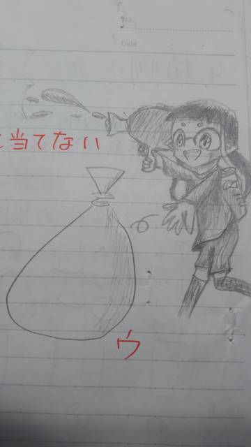 59 : 理科のノートの落書きです。 実験に使う袋の絵がスプラトゥーンのクイックボムに見えたんで…