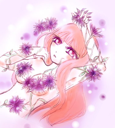 お花と同化した感じの、セクシーな可愛い女の子のアイコンお願いしたいです…、紫が好きなので、紫を入れて頂けると嬉しいです…