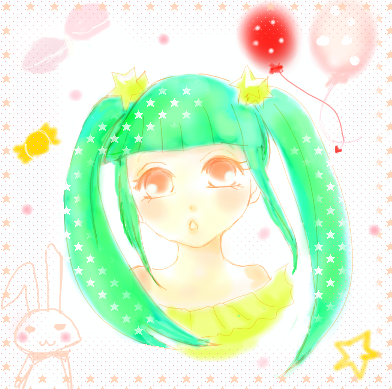 背景の夢が思い付かず自分の好きなものを描きました(・・;)