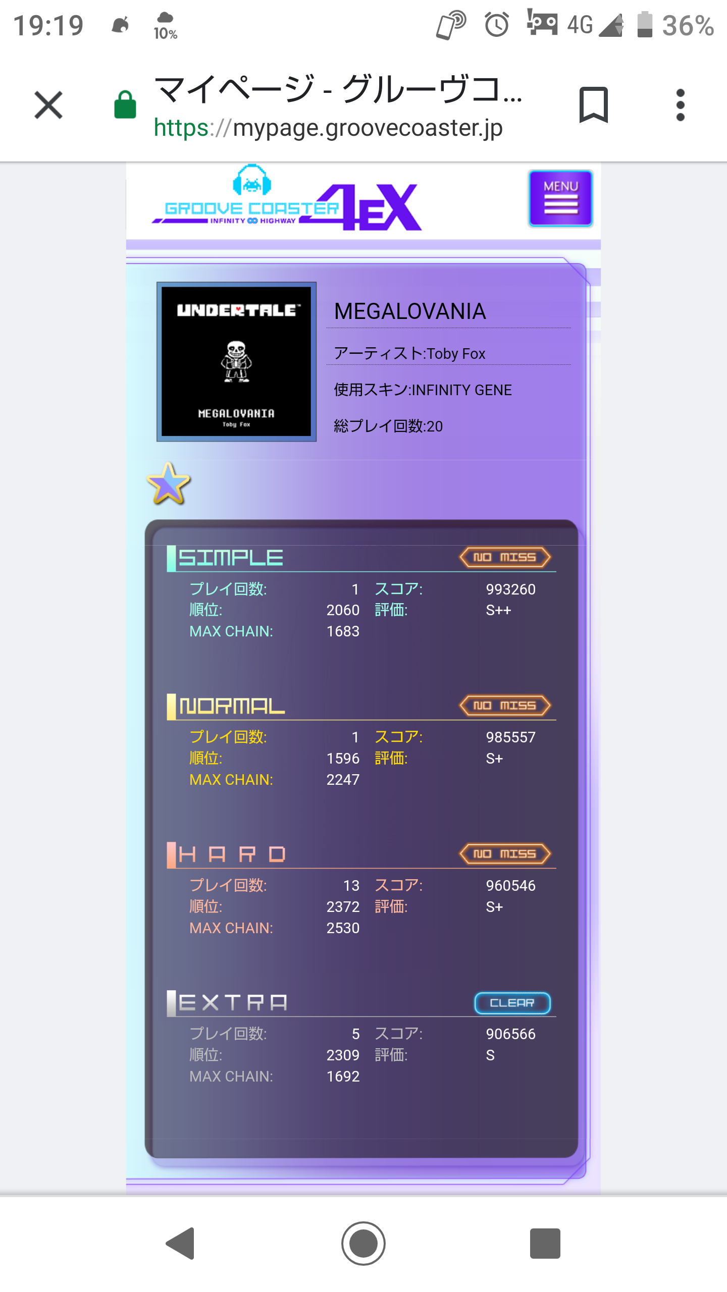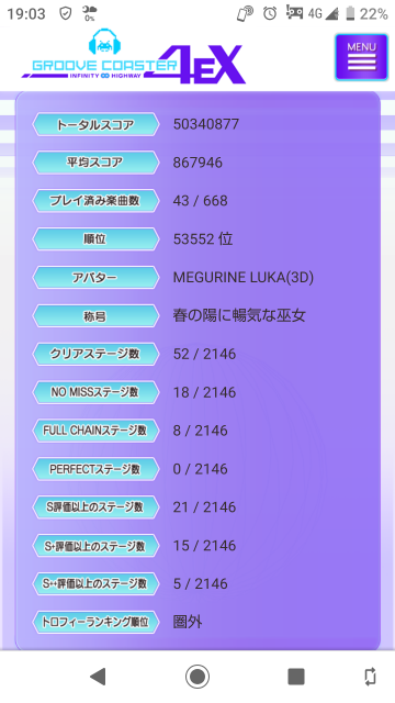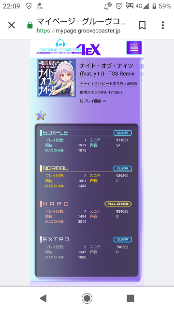 25 : extra13知ってる曲がなくてやる気が出ない… 現在はextra解放と称号集めが中心。 次イベはもっとまともに参加したい! |