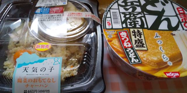 825 : 昼御飯、天気の子のローソンの弁当とドンベイきつねビックサイズ |