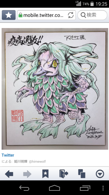 84 : お札がわりに厄除けとして姫川先生の最近噂の妖怪アマビエ様をここに貼り付けて置きます🙏 (次のゼルダシリーズで出てきそうなオリキャラにしか見えないw)↓ https://mobile.twitter.com/himewolf/status/1243820004530737152?p=v