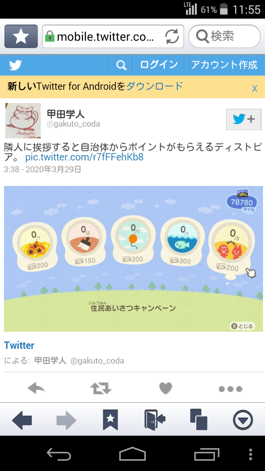 89 : >>79 ん❔マイルってこれの事かな❓https://mobile.twitter.com/gakuto_coda/status/1244212377345601542?p=v↓