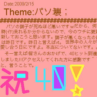 | +MENU+ | †トップ† | †モドル† | †ニッキtop† | †2009 秋† | †ゲムキ† |