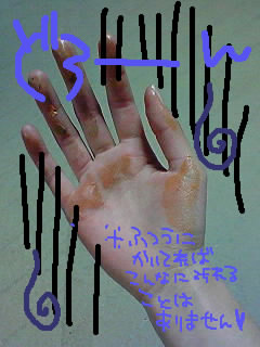 ごめんなさい。コレ、わざと絵の具に手を突っ込みました(((←
